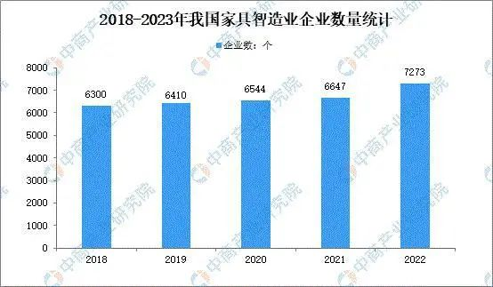 數(shù)據(jù)顯示,2022年家具制造業(yè)企業(yè)數(shù)量達7273個,同比增長9.42%,較去年增長了626家。