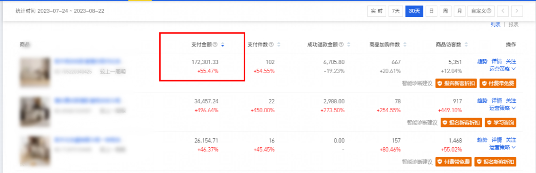 針對同行競店以及競店相同競品進行分析,找出競店周期引流詞和成交轉(zhuǎn)化詞,對比市場搜索趨勢詞進行添加,每一個周期對比做篩選,關(guān)鍵詞引流訪客周期突破1000,推廣引流下單金額7萬+。”寧思告訴我們。