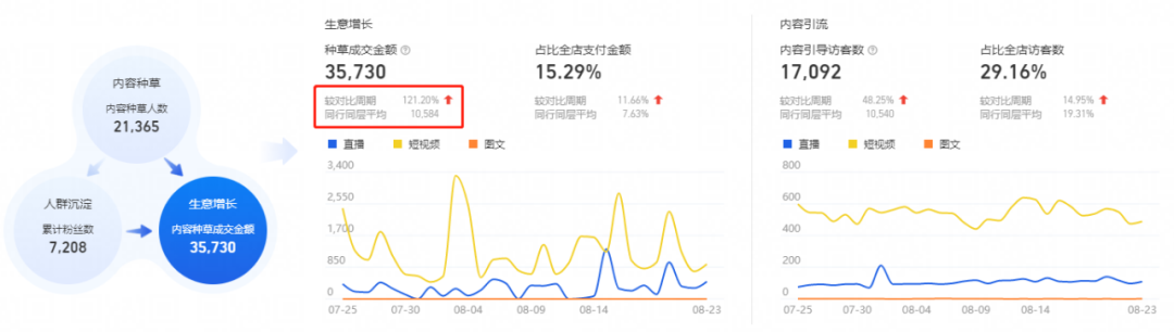 “通過內(nèi)容營銷可以合理地幫助店鋪打開內(nèi)容渠道流量,提升店鋪免費流量的獲取能力降低經(jīng)營成本,且提高品牌知名度和曝光度,讓消費者跟品牌強互動,拉動內(nèi)容流量持續(xù)增長。我們的店鋪初始內(nèi)容流量幾乎為零,通過該方式高效發(fā)布短視頻,來帶動客戶從認知到種草,從而提升單品銷量增長。”光灝向我們介紹。