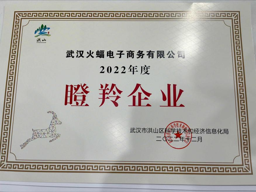 ▲火蝠電商「瞪羚企業」認證證書