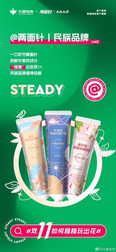 而火蝠B(yǎng)OSS鐘雨清,不僅會(huì)在11月10日空降兩面針官方淘寶直播間,而且11月11日還會(huì)在火蝠直播間引爆雙十一大促之夜。除了萬(wàn)千豪禮相送,鐘雨清還將現(xiàn)場(chǎng)解讀火蝠電商“數(shù)智驅(qū)動(dòng)百分服務(wù),助力老字號(hào)煥新出擊”的營(yíng)銷(xiāo)打法和本屆雙十一的“穩(wěn)戰(zhàn)”內(nèi)核。面對(duì)日顯冷清的雙十一,品牌商家要如何講出新故事,消費(fèi)者又要如何優(yōu)中選優(yōu)呢?敬請(qǐng)關(guān)注火蝠穩(wěn)戰(zhàn)雙十一營(yíng)銷(xiāo)活動(dòng),穩(wěn)穩(wěn)出擊,共贏雙十一。