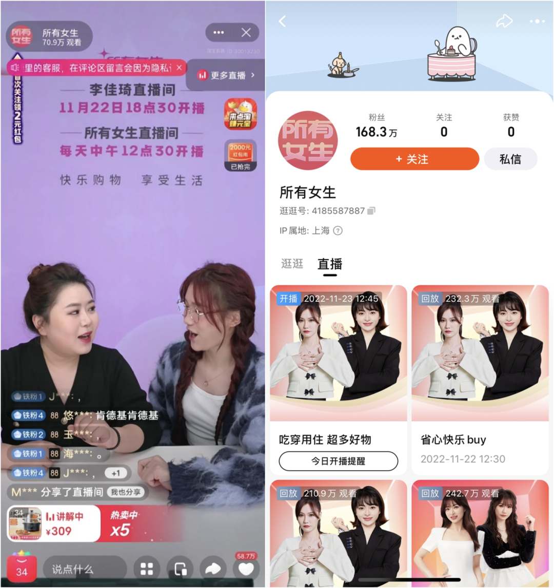 而美one以李佳琦IP為核心,推出新的直播間“所有女生”,也就順理成章。
